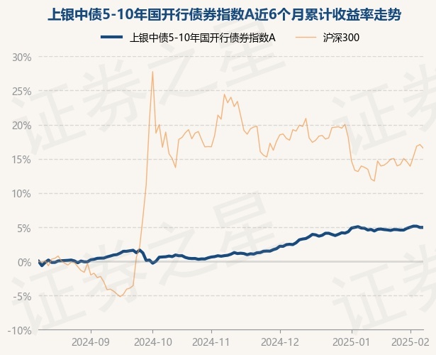 上银中债5-10年国开行债券指数A为指数型-固收基金,根据最新一期基金季报显示,该基金资产配置:无股票类资产,债券占净值比92.57%,现金占净值比2.97%。