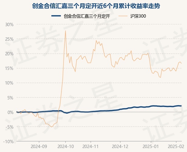 证券之星消息,2月11日,创金合信汇嘉三个月定开最新单位净值为1.0653元,累计净值为1.1982元,较前一交易日上涨0.0%。历史数据显示该基金近1个月上涨0.09%,近3个月上涨1.77%,近6个月上涨2.05%,近1年上涨4.89%。该基金近6个月的累计收益率走势如下图: