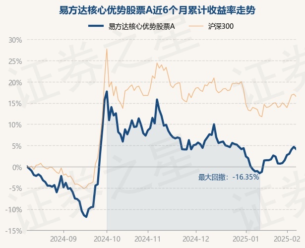 证券之星消息,2月11日,易方达核心优势股票A最新单位净值为0.6813元,累计净值为0.6813元,较前一交易日下跌0.48%。历史数据显示该基金近1个月上涨5.79%,近3个月下跌6.96%,近6个月上涨4.16%,近1年上涨5.71%。该基金近6个月的累计收益率走势如下图: