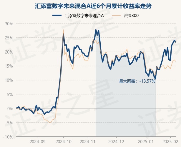 证券之星消息,2月11日,汇添富数字未来混合A最新单位净值为0.6475元,累计净值为0.6475元,较前一交易日下跌0.43%。历史数据显示该基金近1个月上涨10.91%,近3个月下跌3.31%,近6个月上涨23.45%,近1年上涨25.41%。该基金近6个月的累计收益率走势如下图: