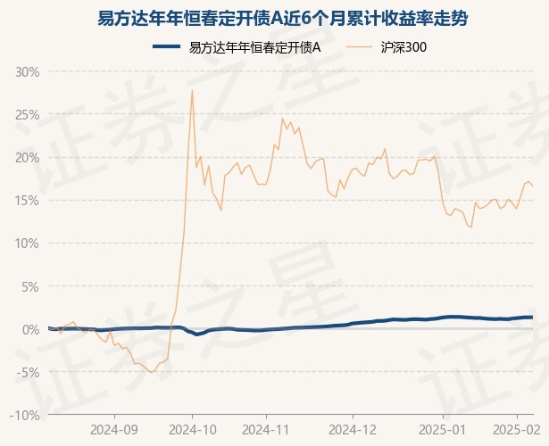 证券之星消息,2月11日,易方达年年恒春定开债A最新单位净值为1.0185元,累计净值为1.1522元,较前一交易日上涨0.0%。历史数据显示该基金近1个月上涨0.01%,近3个月上涨1.25%,近6个月上涨1.26%,近1年上涨3.67%。该基金近6个月的累计收益率走势如下图: