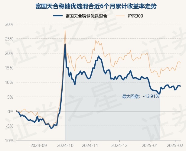 证券之星消息,2月11日,富国天合稳健优选混合最新单位净值为1.383元,累计净值为4.1785元,较前一交易日下跌0.17%。历史数据显示该基金近1个月上涨2.35%,近3个月下跌8.69%,近6个月上涨8.59%,近1年下跌0.84%。该基金近6个月的累计收益率走势如下图: