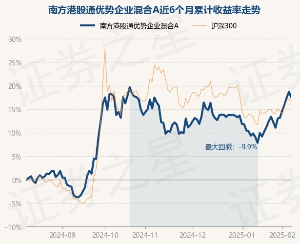 证券之星消息,2月11日,南方港股通优势企业混合A最新单位净值为0.8519元,累计净值为0.8519元,较前一交易日下跌0.99%。历史数据显示该基金近1个月上涨7.75%,近3个月上涨1.57%,近6个月上涨17.54%,近1年上涨26.23%。该基金近6个月的累计收益率走势如下图: