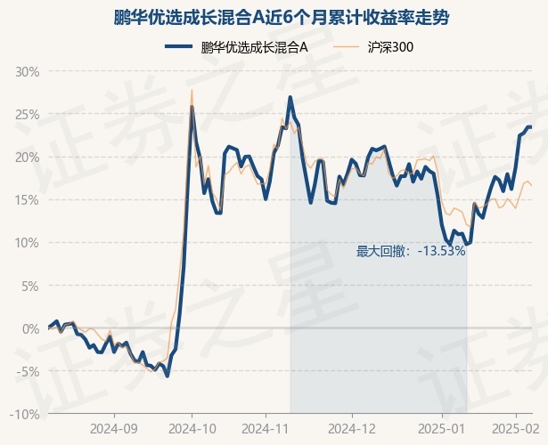 证券之星消息,2月11日,鹏华优选成长混合A最新单位净值为0.6404元,累计净值为0.6404元,较前一交易日上涨0.0%。历史数据显示该基金近1个月上涨11.26%,近3个月下跌3.8%,近6个月上涨22.07%,近1年上涨18.46%。该基金近6个月的累计收益率走势如下图:
