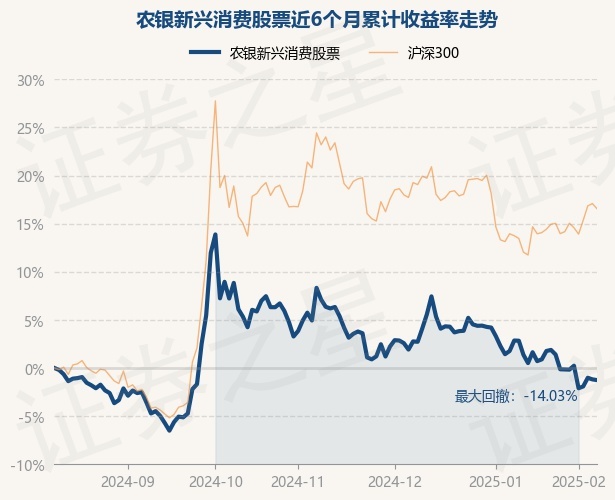 证券之星消息,2月11日,农银新兴消费股票最新单位净值为0.5358元,累计净值为0.5358元,较前一交易日下跌0.07%。历史数据显示该基金近1个月下跌2.6%,近3个月下跌7.16%,近6个月下跌1.25%,近1年下跌6.36%。该基金近6个月的累计收益率走势如下图: