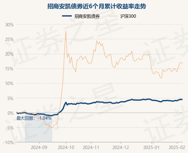 证券之星消息,2月11日,招商安凯债券最新单位净值为1.0349元,累计净值为1.1326元,较前一交易日下跌0.07%。历史数据显示该基金近1个月上涨0.71%,近3个月上涨0.78%,近6个月上涨4.43%,近1年上涨9.26%。该基金近6个月的累计收益率走势如下图: