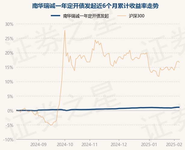 证券之星消息,2月11日,南华瑞诚一年定开债发起最新单位净值为1.053元,累计净值为1.0968元,较前一交易日下跌0.01%。历史数据显示该基金近1个月上涨0.13%,近3个月上涨0.64%,近6个月上涨1.08%,近1年上涨2.86%。该基金近6个月的累计收益率走势如下图: