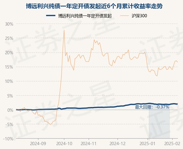 证券之星消息,2月11日,博远利兴纯债一年定开债发起最新单位净值为1.0394元,累计净值为1.0865元,较前一交易日上涨0.01%。历史数据显示该基金近1个月上涨0.04%,近3个月上涨1.17%,近6个月上涨1.97%,近1年上涨4.33%。该基金近6个月的累计收益率走势如下图: