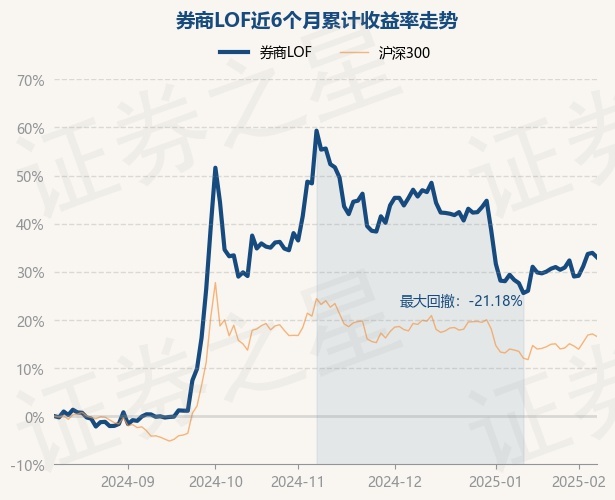 证券之星消息,2月11日,券商LOF最新单位净值为1.1054元,累计净值为0.6446元,较前一交易日下跌0.69%。历史数据显示该基金近1个月上涨5.91%,近3个月下跌14.53%,近6个月上涨33.0%,近1年上涨21.87%。该基金近6个月的累计收益率走势如下图: