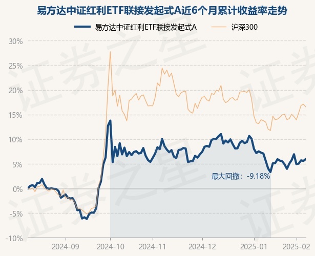 证券之星消息,2月11日,易方达中证红利ETF联接发起式A最新单位净值为1.1995元,累计净值为1.3995元,较前一交易日上涨0.35%。历史数据显示该基金近1个月上涨1.8%,近3个月下跌1.78%,近6个月上涨6.03%,近1年上涨6.64%。该基金近6个月的累计收益率走势如下图: