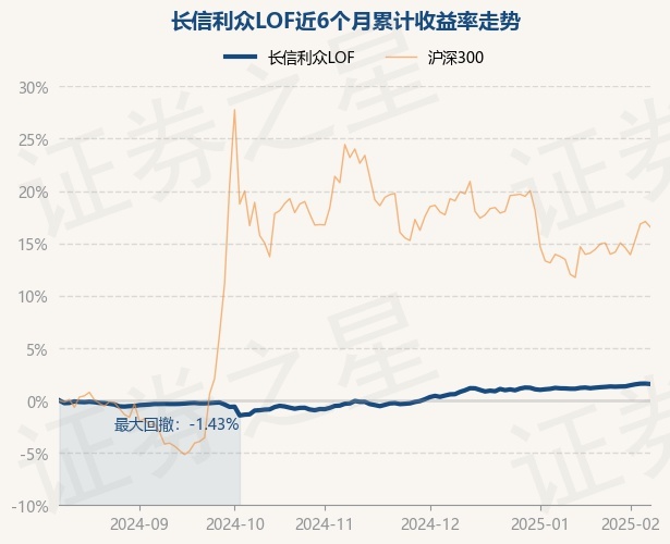证券之星消息,2月11日,长信利众LOF最新单位净值为0.985元,累计净值为1.324元,较前一交易日下跌0.04%。历史数据显示该基金近1个月上涨0.45%,近3个月上涨1.62%,近6个月上涨1.57%,近1年上涨3.92%。该基金近6个月的累计收益率走势如下图:
