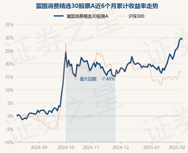 证券之星消息,2月11日,富国消费精选30股票A最新单位净值为0.8635元,累计净值为0.8635元,较前一交易日下跌0.32%。历史数据显示该基金近1个月上涨10.42%,近3个月上涨7.74%,近6个月上涨29.23%,近1年上涨33.83%。该基金近6个月的累计收益率走势如下图: