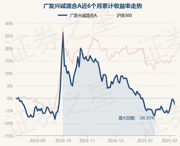 证券之星消息,2月11日,广发兴诚混合A最新单位净值为0.4363元,累计净值为0.4363元,较前一交易日下跌1.76%。历史数据显示该基金近1个月上涨4.13%,近3个月下跌15.76%,近6个月下跌2.5%,近1年下跌5.11%。该基金近6个月的累计收益率走势如下图: