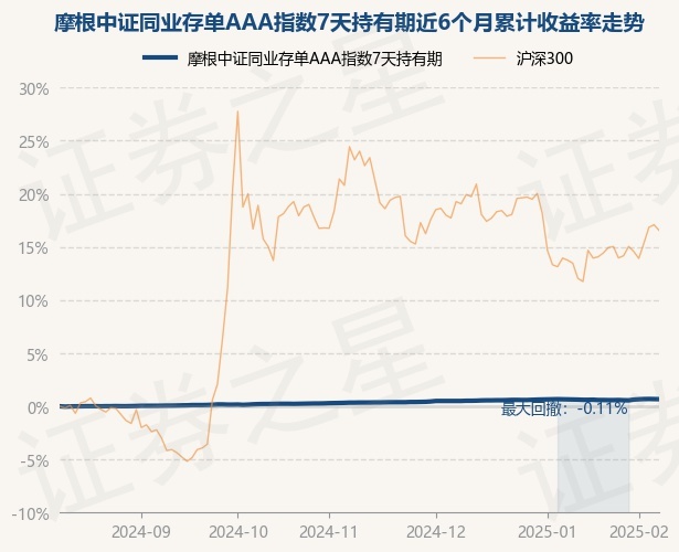 摩根中证同业存单AAA指数7天持有期为指数型-固收基金,根据最新一期基金季报显示,该基金资产配置:无股票类资产,债券占净值比87.83%,现金占净值比0.02%。