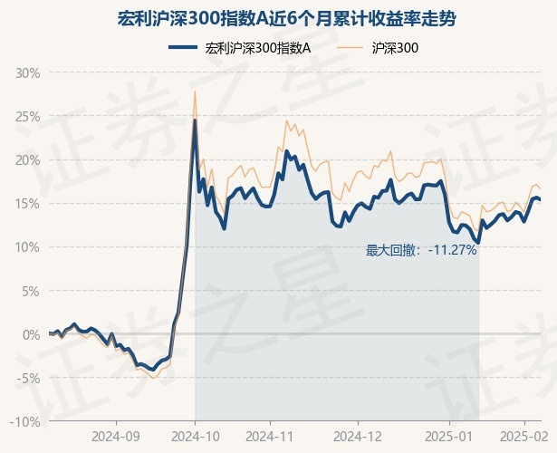 证券之星消息,2月11日,宏利沪深300指数A最新单位净值为1.5425元,累计净值为2.349元,较前一交易日下跌0.19%。历史数据显示该基金近1个月上涨4.05%,近3个月下跌4.13%,近6个月上涨15.14%,近1年上涨15.9%。该基金近6个月的累计收益率走势如下图: