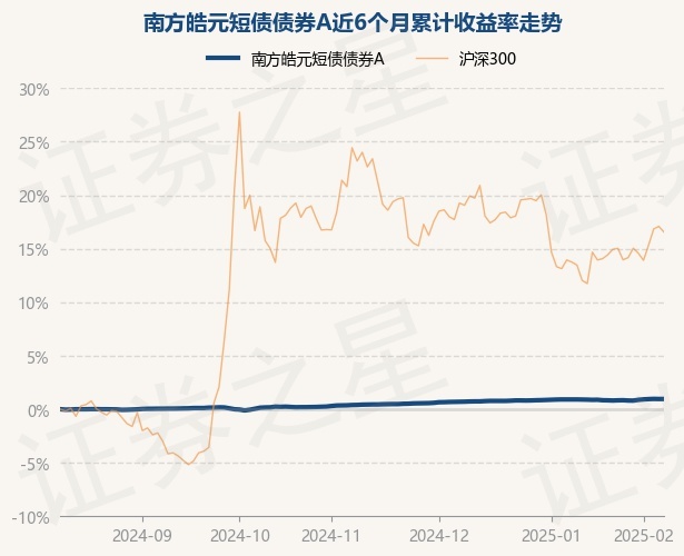 证券之星消息,2月11日,南方皓元短债债券A最新单位净值为1.1267元,累计净值为1.1567元,较前一交易日上涨0.0%。历史数据显示该基金近1个月上涨0.05%,近3个月上涨0.53%,近6个月上涨0.96%,近1年上涨2.6%。该基金近6个月的累计收益率走势如下图:
