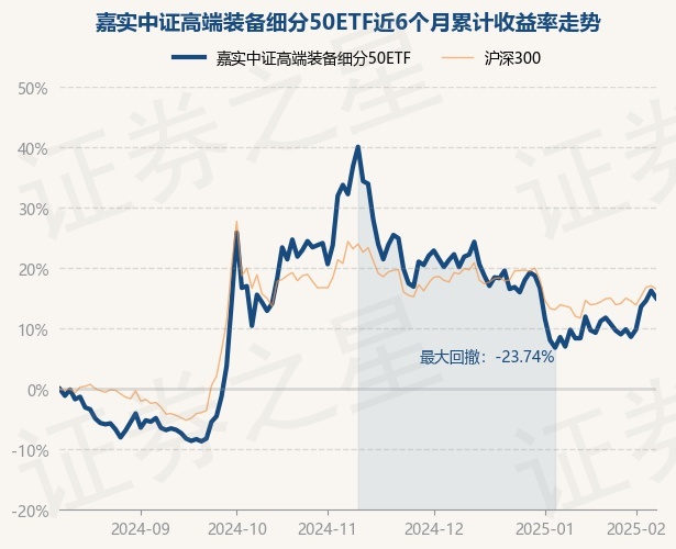 证券之星消息,2月11日,嘉实中证高端装备细分50ETF最新单位净值为0.7621元,累计净值为0.7621元,较前一交易日下跌1.05%。历史数据显示该基金近1个月上涨6.14%,近3个月下跌17.88%,近6个月上涨15.05%,近1年上涨18.19%。该基金近6个月的累计收益率走势如下图: