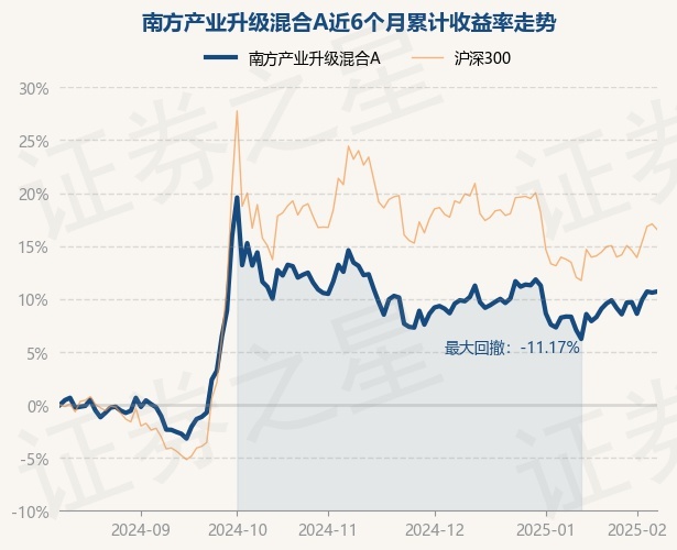证券之星消息,2月11日,南方产业升级混合A最新单位净值为0.6705元,累计净值为0.6705元,较前一交易日上涨0.09%。历史数据显示该基金近1个月上涨3.39%,近3个月下跌2.15%,近6个月上涨10.7%,近1年上涨6.46%。该基金近6个月的累计收益率走势如下图: