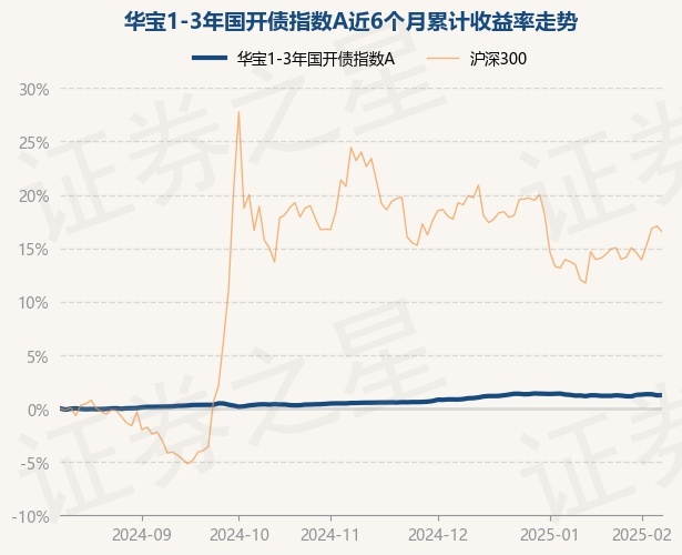 证券之星消息,2月11日,华宝1-3年国开债指数A最新单位净值为1.0569元,累计净值为1.1359元,较前一交易日上涨0.01%。历史数据显示该基金近1个月上涨0.03%,近3个月上涨0.71%,近6个月上涨1.25%,近1年上涨3.21%。该基金近6个月的累计收益率走势如下图: