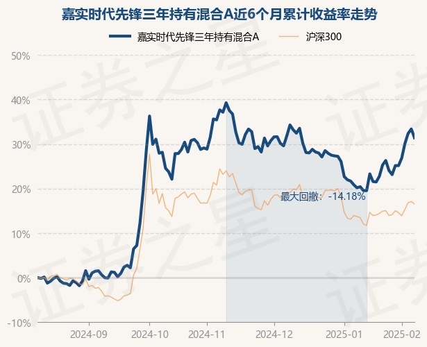 证券之星消息,2月11日,嘉实时代先锋三年持有混合A最新单位净值为0.6342元,累计净值为0.6342元,较前一交易日下跌1.49%。历史数据显示该基金近1个月上涨9.91%,近3个月下跌5.65%,近6个月上涨31.41%,近1年上涨25.19%。该基金近6个月的累计收益率走势如下图: