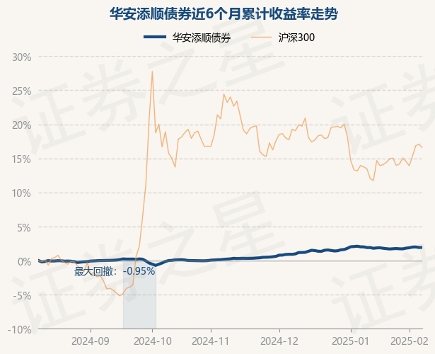 证券之星消息,2月11日,华安添顺债券最新单位净值为1.0802元,累计净值为1.0802元,较前一交易日上涨0.01%。历史数据显示该基金近1个月上涨0.02%,近3个月上涨1.67%,近6个月上涨1.92%,近1年上涨4.33%。该基金近6个月的累计收益率走势如下图: