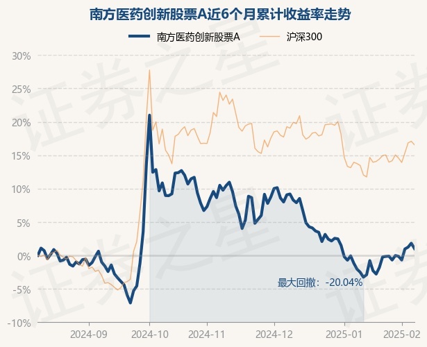 证券之星消息,2月11日,南方医药创新股票A最新单位净值为0.4812元,累计净值为0.4812元,较前一交易日下跌0.78%。历史数据显示该基金近1个月上涨4.43%,近3个月下跌8.53%,近6个月上涨1.03%,近1年下跌0.46%。该基金近6个月的累计收益率走势如下图: