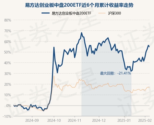 证券之星消息,2月11日,易方达创业板中盘200ETF最新单位净值为1.2038元,累计净值为1.2038元,较前一交易日下跌0.81%。历史数据显示该基金近1个月上涨17.32%,近3个月下跌7.8%,近6个月上涨54.85%,近1年上涨49.63%。该基金近6个月的累计收益率走势如下图: