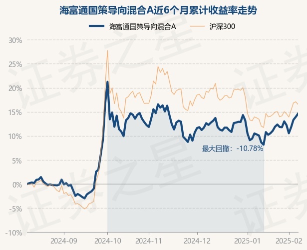 证券之星消息,2月11日,海富通国策导向混合A最新单位净值为1.8773元,累计净值为2.9164元,较前一交易日上涨0.58%。历史数据显示该基金近1个月上涨5.49%,近3个月下跌1.5%,近6个月上涨14.6%,近1年上涨14.78%。该基金近6个月的累计收益率走势如下图:
