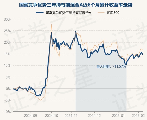 证券之星消息,2月11日,国富竞争优势三年持有期混合A最新单位净值为0.9978元,累计净值为0.9978元,较前一交易日下跌0.77%。历史数据显示该基金近1个月上涨3.59%,近3个月下跌4.86%,近6个月上涨14.6%,近1年上涨24.38%。该基金近6个月的累计收益率走势如下图: