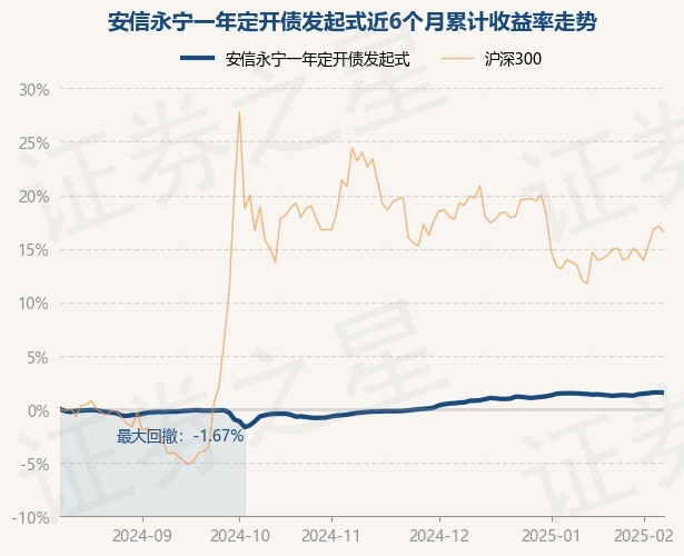 证券之星消息,2月11日,安信永宁一年定开债发起式最新单位净值为1.0474元,累计净值为1.1561元,较前一交易日下跌0.02%。历史数据显示该基金近1个月上涨0.11%,近3个月上涨1.85%,近6个月上涨1.55%,近1年上涨5.16%。该基金近6个月的累计收益率走势如下图: