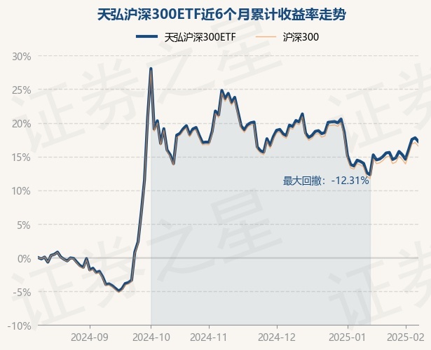 证券之星消息,2月11日,天弘沪深300ETF最新单位净值为1.09元,累计净值为1.09元,较前一交易日下跌0.47%。历史数据显示该基金近1个月上涨4.12%,近3个月下跌5.74%,近6个月上涨17.24%,近1年上涨18.47%。该基金近6个月的累计收益率走势如下图: