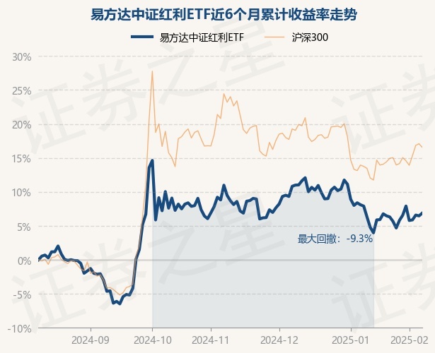 证券之星消息,2月11日,易方达中证红利ETF最新单位净值为1.3256元,累计净值为1.5966元,较前一交易日上涨0.38%。历史数据显示该基金近1个月上涨1.98%,近3个月下跌1.68%,近6个月上涨6.83%,近1年上涨7.43%。该基金近6个月的累计收益率走势如下图: