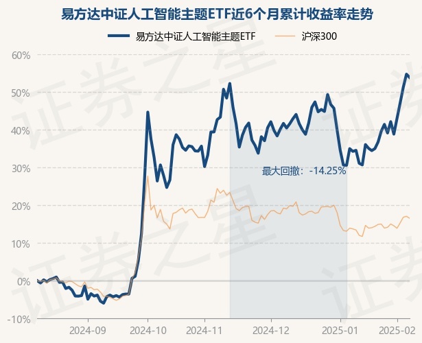 证券之星消息,2月11日,易方达中证人工智能主题ETF最新单位净值为0.9979元,累计净值为0.9979元,较前一交易日下跌0.57%。历史数据显示该基金近1个月上涨17.33%,近3个月上涨2.07%,近6个月上涨53.88%,近1年上涨53.36%。该基金近6个月的累计收益率走势如下图: