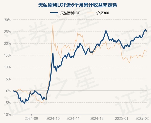 证券之星消息,2月11日,天弘添利LOF最新单位净值为1.5338元,累计净值为2.2183元,较前一交易日下跌0.5%。历史数据显示该基金近1个月上涨5.33%,近3个月上涨4.17%,近6个月上涨25.03%,近1年上涨25.01%。该基金近6个月的累计收益率走势如下图:
