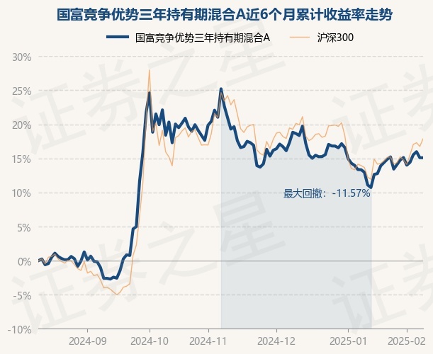 证券之星消息,2月12日,国富竞争优势三年持有期混合A最新单位净值为1.0164元,累计净值为1.0164元,较前一交易日上涨0.0%。历史数据显示该基金近1个月上涨5.52%,近3个月下跌1.73%,近6个月上涨17.23%,近1年上涨26.7%。该基金近6个月的累计收益率走势如下图: