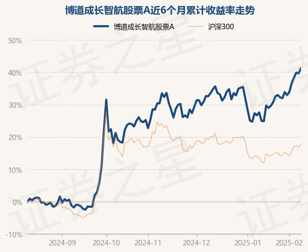 证券之星消息,2月12日,博道成长智航股票A最新单位净值为1.0626元,累计净值为1.0626元,较前一交易日上涨1.09%。历史数据显示该基金近1个月上涨13.01%,近3个月上涨6.68%,近6个月上涨41.21%,近1年上涨52.43%。该基金近6个月的累计收益率走势如下图:
