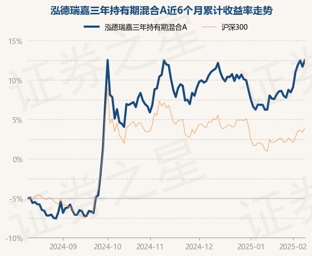 证券之星消息,2月12日,泓德瑞嘉三年持有期混合A最新单位净值为0.8279元,累计净值为0.8279元,较前一交易日上涨1.25%。历史数据显示该基金近1个月上涨10.27%,近3个月上涨0.82%,近6个月上涨35.04%,近1年上涨28.52%。该基金近6个月的累计收益率走势如下图: