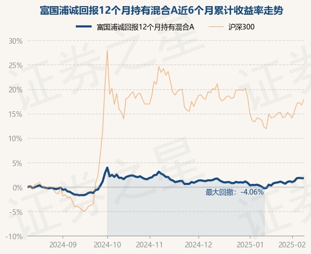 证券之星消息,2月12日,富国浦诚回报12个月持有混合A最新单位净值为0.9713元,累计净值为0.9713元,较前一交易日下跌0.01%。历史数据显示该基金近1个月上涨2.06%,近3个月下跌0.26%,近6个月上涨1.79%,近1年上涨1.92%。该基金近6个月的累计收益率走势如下图: