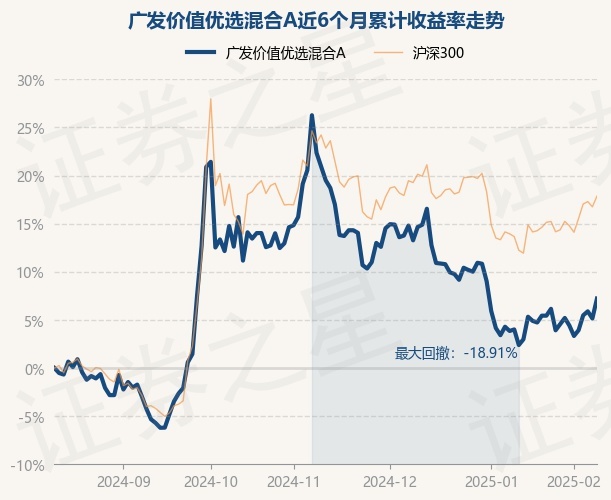 证券之星消息,2月12日,广发价值优选混合A最新单位净值为0.952元,累计净值为0.952元,较前一交易日上涨1.97%。历史数据显示该基金近1个月上涨4.72%,近3个月下跌10.28%,近6个月上涨7.22%,近1年上涨10.61%。该基金近6个月的累计收益率走势如下图: