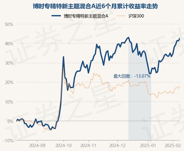 证券之星消息,2月12日,博时专精特新主题混合A最新单位净值为0.9405元,累计净值为0.9405元,较前一交易日上涨0.94%。历史数据显示该基金近1个月上涨14.21%,近3个月上涨3.65%,近6个月上涨42.56%,近1年上涨42.05%。该基金近6个月的累计收益率走势如下图: