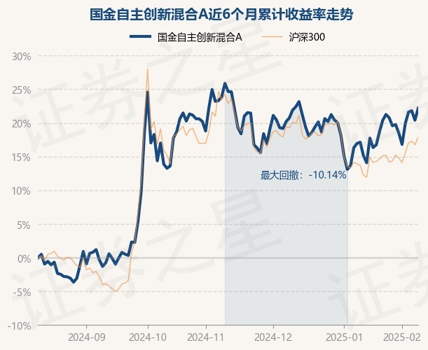 证券之星消息,2月12日,国金自主创新混合A最新单位净值为0.5962元,累计净值为0.5962元,较前一交易日上涨1.48%。历史数据显示该基金近1个月上涨6.1%,近3个月下跌1.99%,近6个月上涨22.17%,近1年上涨28.66%。该基金近6个月的累计收益率走势如下图: