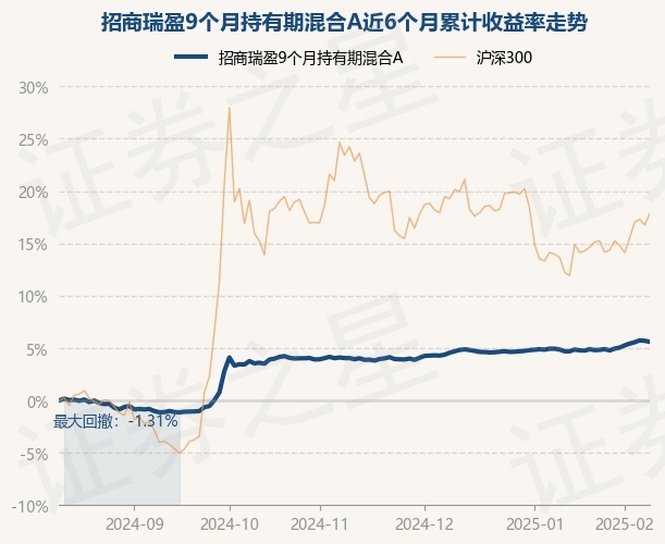 证券之星消息,2月12日,招商瑞盈9个月持有期混合A最新单位净值为1.0606元,累计净值为1.0606元,较前一交易日下跌0.09%。历史数据显示该基金近1个月上涨0.87%,近3个月上涨1.6%,近6个月上涨5.6%,近1年上涨7.3%。该基金近6个月的累计收益率走势如下图: