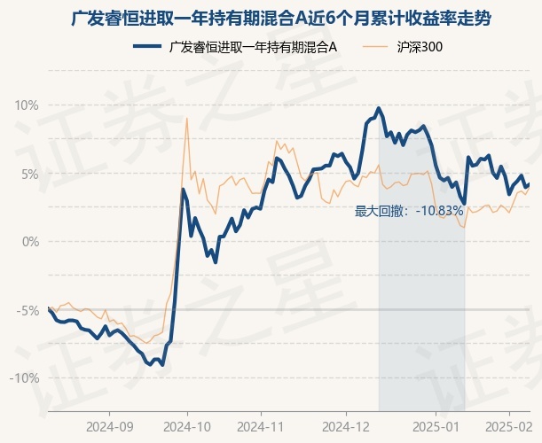 证券之星消息,2月12日,广发睿恒进取一年持有期混合A最新单位净值为0.8438元,累计净值为0.8438元,较前一交易日上涨0.36%。历史数据显示该基金近1个月上涨1.5%,近3个月下跌1.06%,近6个月上涨18.26%,近1年上涨12.31%。该基金近6个月的累计收益率走势如下图: