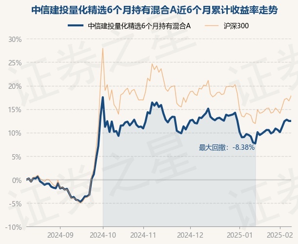 中信建投量化精选6个月持有混合A为混合型-偏股基金,根据最新一期基金季报显示,该基金资产配置:股票占净值比79.69%,无债券类资产,现金占净值比20.65%。基金十大重仓股如下: