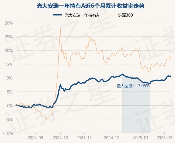 证券之星消息,2月12日,光大安瑞一年持有A最新单位净值为1.1613元,累计净值为1.1613元,较前一交易日上涨0.23%。历史数据显示该基金近1个月上涨2.55%,近3个月上涨0.8%,近6个月上涨10.65%,近1年上涨13.18%。该基金近6个月的累计收益率走势如下图:
