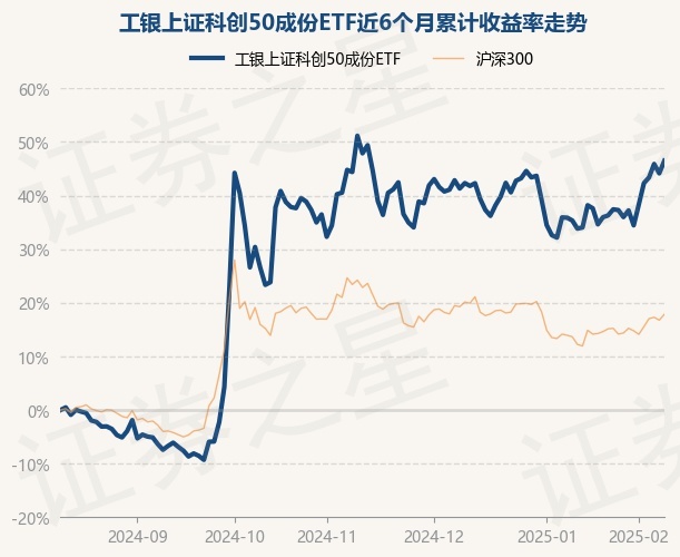 证券之星消息,2月12日,工银上证科创50成份ETF最新单位净值为1.0706元,累计净值为0.746元,较前一交易日上涨1.63%。历史数据显示该基金近1个月上涨9.47%,近3个月下跌0.93%,近6个月上涨46.5%,近1年上涨38.14%。该基金近6个月的累计收益率走势如下图: