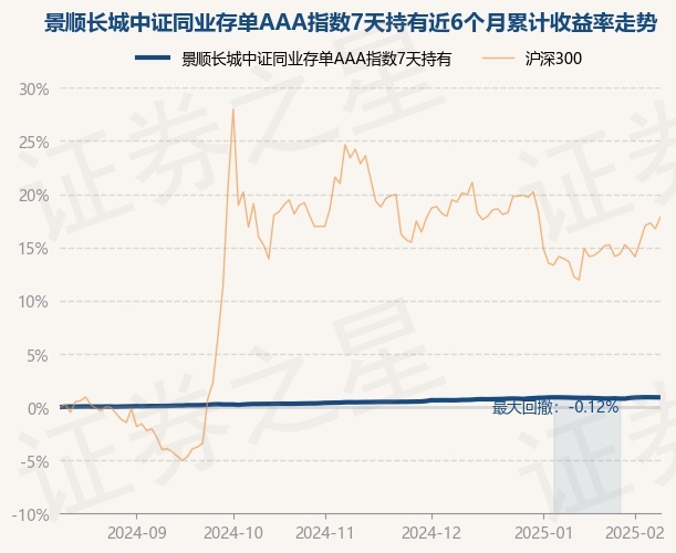 证券之星消息,2月12日,景顺长城中证同业存单AAA指数7天持有最新单位净值为1.0637元,累计净值为1.0637元,较前一交易日上涨0.0%。历史数据显示该基金近1个月上涨0.04%,近3个月上涨0.45%,近6个月上涨0.91%,近1年上涨2.08%。该基金近6个月的累计收益率走势如下图: