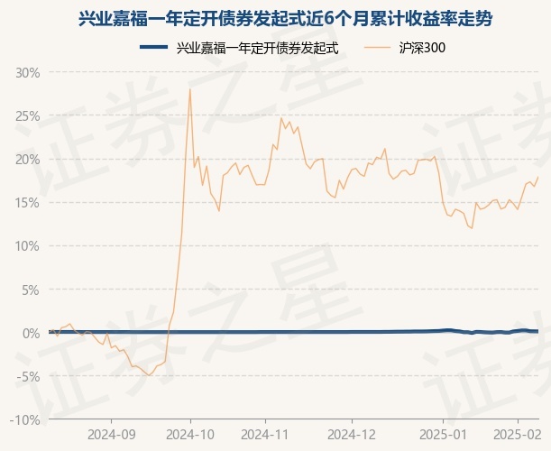 证券之星消息,2月12日,兴业嘉福一年定开债券发起式最新单位净值为1.0674元,累计净值为1.166元,较前一交易日下跌0.01%。历史数据显示该基金近1个月上涨0.09%,近3个月上涨0.08%,近6个月上涨0.07%,近1年上涨6.31%。该基金近6个月的累计收益率走势如下图: