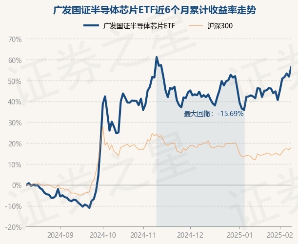 证券之星消息,2月12日,广发国证半导体芯片ETF最新单位净值为0.6533元,累计净值为1.3066元,较前一交易日上涨2.95%。历史数据显示该基金近1个月上涨9.84%,近3个月下跌0.46%,近6个月上涨56.33%,近1年上涨66.4%。该基金近6个月的累计收益率走势如下图: