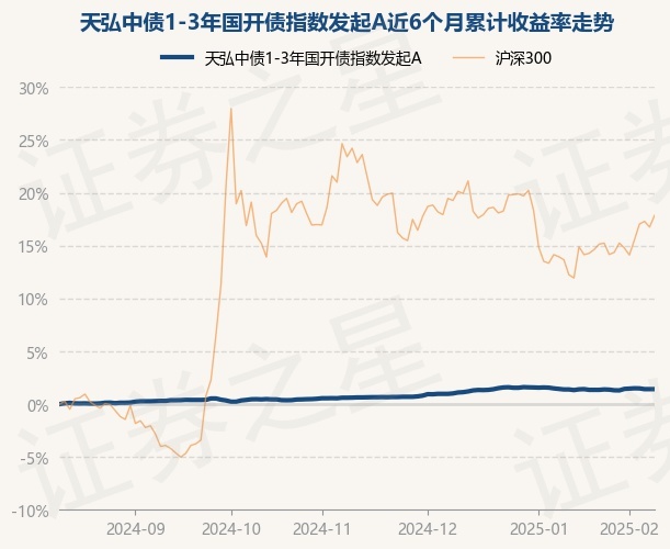 证券之星消息,2月12日,天弘中债1-3年国开债指数发起A最新单位净值为1.0206元,累计净值为1.1298元,较前一交易日上涨0.0%。历史数据显示该基金近1个月上涨0.03%,近3个月上涨0.78%,近6个月上涨1.42%,近1年上涨3.34%。该基金近6个月的累计收益率走势如下图: